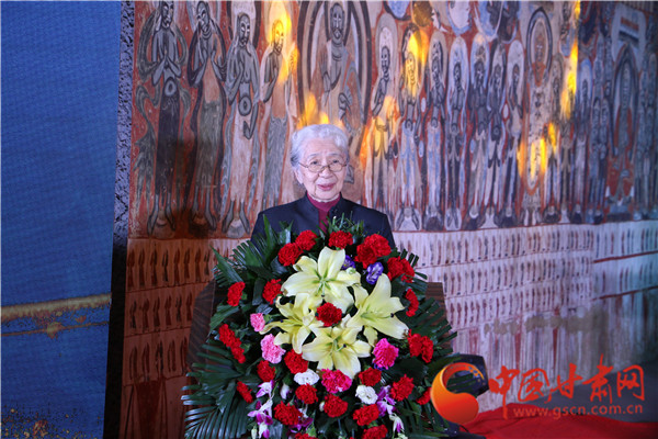 常沙娜先生與敦煌研究院副院長羅華慶共同為“中國敦煌石窟保護研究基金會常書鴻敦煌藝術(shù)專項基金”揭牌。