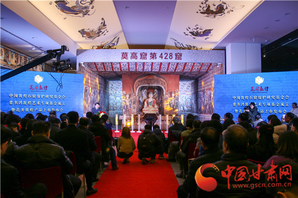 中國甘肅網(wǎng)1月8日訊 (本網(wǎng)記者 彭曉姣)1月8日,中國敦煌石窟保護研究基金會常書鴻敦煌藝術(shù)專項基金成立暨花開敦煌文化禮賓酒上市發(fā)布會在敦煌研究院蘭州分院舉行。