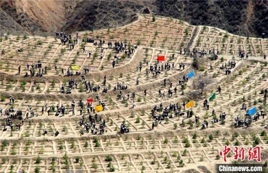 慶陽(yáng)市西峰城區(qū)職工春季義務(wù)植樹(shù)現(xiàn)場(chǎng)。 (資料圖) 徐亞?wèn)| 攝