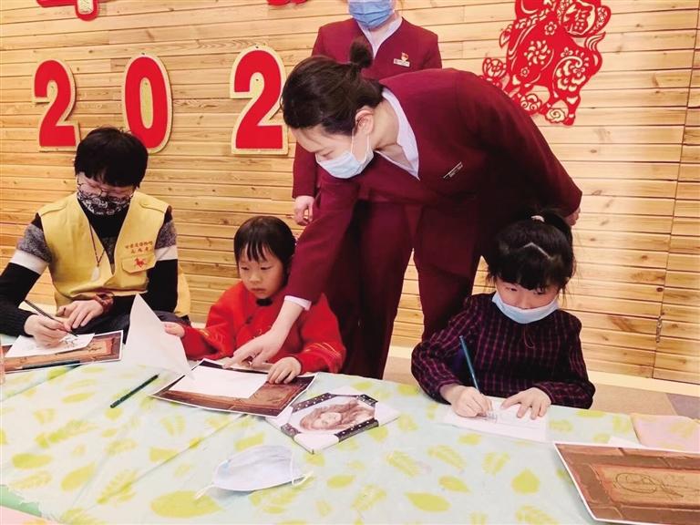 圖為小朋友在博物館體驗?zāi)晁孜幕?/p>