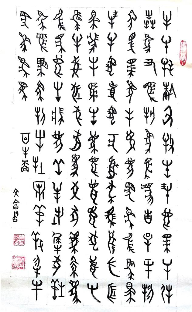 牛,是我國先民最早馴化的哺乳動(dòng)物,因此,也是中國最早的象形文字符號(hào)??脊虐l(fā)現(xiàn)殷商時(shí)期比較成熟的漢字就刻在龜板牛骨上,被命名為甲骨文,稱為漢文字之祖。漢文字經(jīng)過篆隸楷草演變至今,牛字始終沒有脫離它的象形基因。
