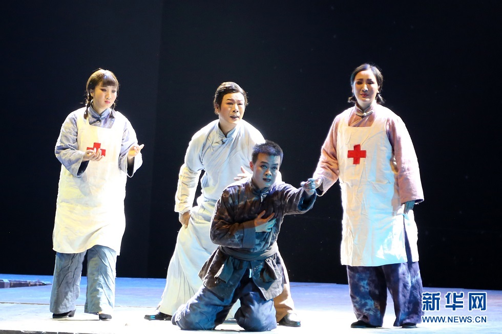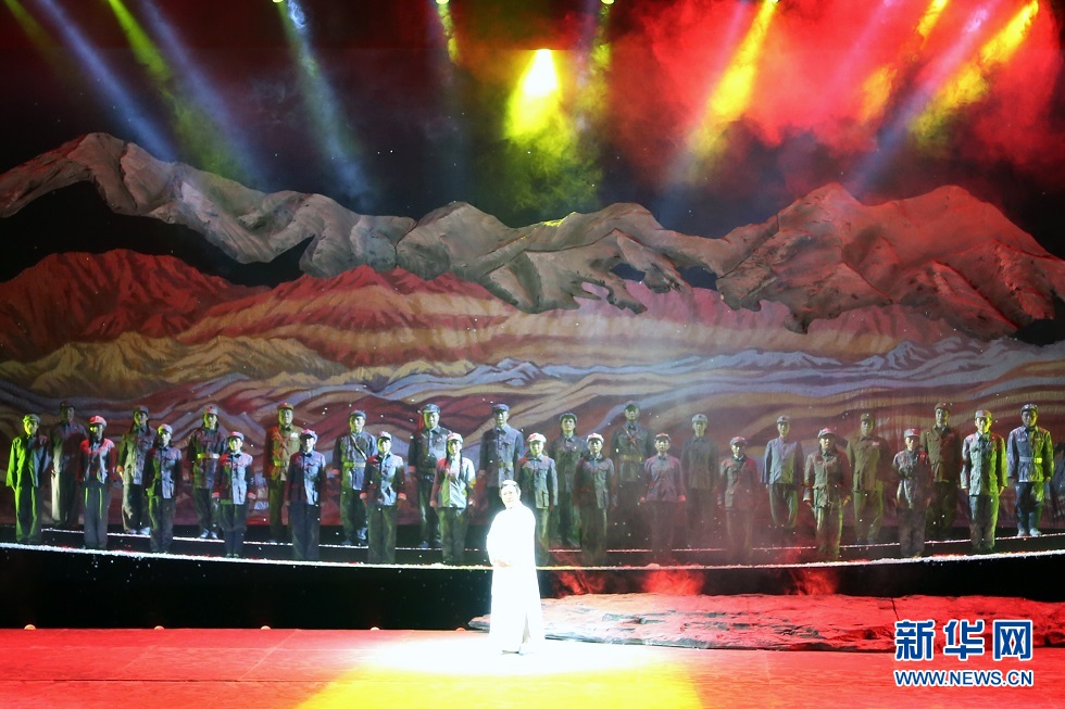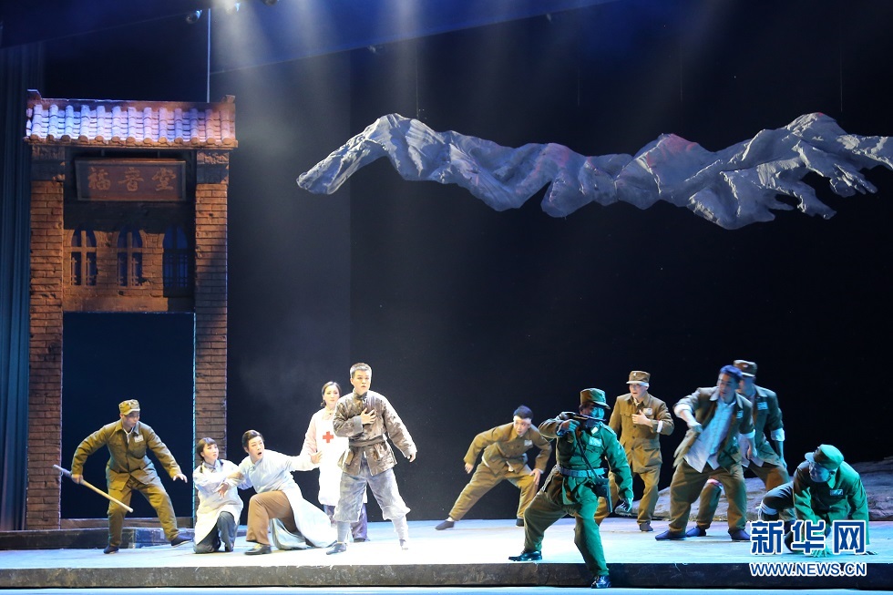 5月30日晚,大型秦腔現(xiàn)代戲《肝膽祁連》在蘭州音樂廳精彩上演?!陡文懫钸B》以真實(shí)的歷史故事改編,講述了愛國民主人士高金城營救紅西路軍戰(zhàn)士的感人故事。新華網(wǎng)發(fā)(王晶晶 攝)