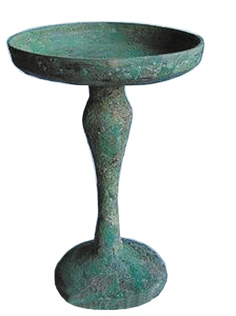 中國(guó)古代的照明工具,除掉最原始的火把,最早的是油燈而不是蠟燭,有關(guān)蠟燭的記載是漢代才有的。既然要用油燈,古人用什么器皿來(lái)盛放燈油和燈芯呢?人們找來(lái)找去,一種名叫“豆”的器皿脫穎而出。“豆”本為上古時(shí)代的一種盛食器,其上為圓盞盤,中間為或長(zhǎng)或短的直柄,最下為喇叭或圓足形底座。簡(jiǎn)單地說,“豆”的形狀就像高腳盤,一般用陶制,也有青銅或木制的,青銅制的用作祭祀禮器。“豆”的造型,完全符合人們對(duì)燈具的基本需求——既有能裝油和燈芯的淺淺的容器,又有方便移動(dòng)的把手。于是,人們就在“豆”的基礎(chǔ)上稍加修改,用陶土燒制出了最初的高腳燈具。