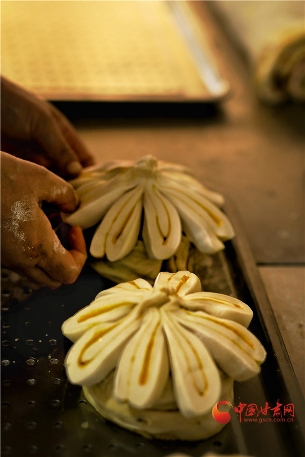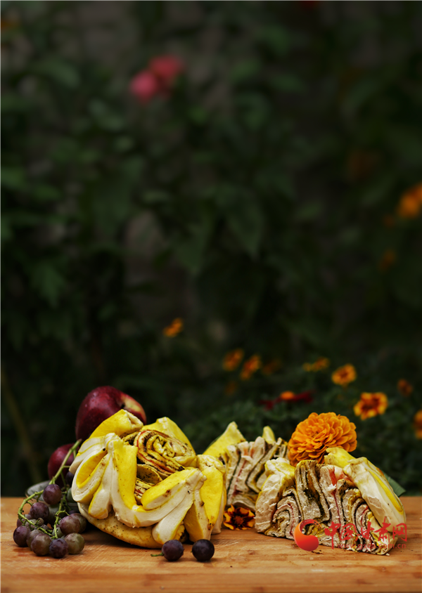香豆、油酥、姜黃、紅曲、胡麻……最樸實的食材,最傳統(tǒng)的工藝,讓月餅在蒸汽中充分鼓脹,最終飽滿盛開。卷沿彎曲,狀似玫瑰。切開,內(nèi)里豐富,色彩斑斕,如同張掖丹霞,熠彩生輝,包羅萬象。(本網(wǎng)記者 宋芳科 通訊員 張文)