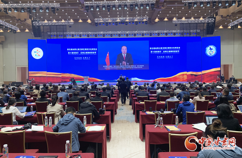 中國甘肅網(wǎng)9月24日訊(本網(wǎng)記者  宋芳科 楊亞楠 張振國)9月24日上午,第五屆絲綢之路(敦煌)國際文化博覽會和第十屆敦煌行·絲綢之路國際旅游節(jié)開幕。本屆“一會一節(jié)”由文化和旅游部、國家廣播電視總局、中國國際貿(mào)易促進委員會、甘肅省人民政府共同主辦,以“交響絲路 文博天下”為主題,旨在進一步加強“一帶一路”人文交流的官方合作和民間往來,增進共建“一帶一路”國家的文化認(rèn)同。中共中央政治局委員、中央書記處書記、中宣部部長黃坤明以視頻方式發(fā)表主旨演講。