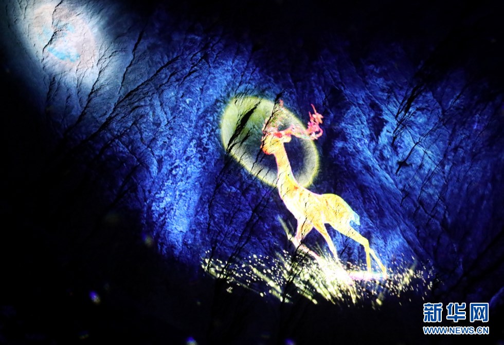 光影投射出的七色鹿形象。新華網(wǎng)發(fā)(王生元 攝)