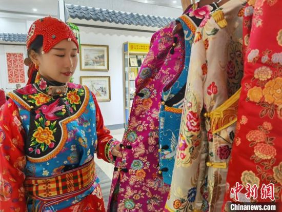 10月中旬,甘肅省甘南藏族自治州手藝人在甘肅省婦聯隴原巧手館展示民族服飾。(資料圖) 徐雪 攝