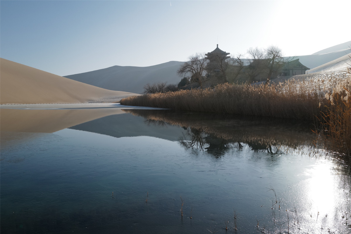 雪落敦煌寂靜無聲 大漠山泉如詩如畫