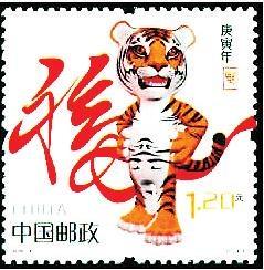 2010年1月5日發(fā)行第三輪生肖郵票第七套《庚寅年》特種郵票,全套1枚,由中央美術(shù)學(xué)院設(shè)計學(xué)院教授馬剛設(shè)計。設(shè)計者利用三維造型的特點(diǎn)采用擬人化的造型手法,勾勒出一只氣宇軒昂、活潑動人的卡通虎形象。