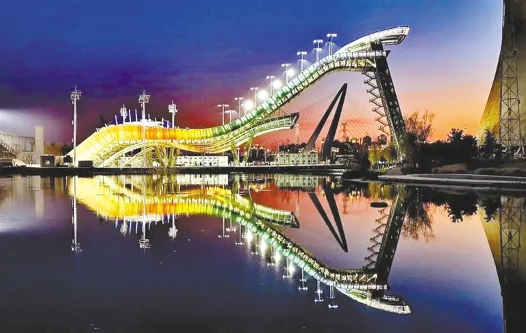 宛若敦煌“飛天”飄帶的首鋼滑雪大跳臺由賽道、裁判塔和看臺區(qū)域三部分組成,賽道長164米,賽道最寬處34米,最高點60米,單板選手從高處疾速下滑,通過大跳臺起跳,進行高空空翻、回轉等技術動作!這是全球首座單板大跳臺運動永久跳臺,也是冬奧史上第一座與工業(yè)遺產(chǎn)再利用直接結合的競賽場館。