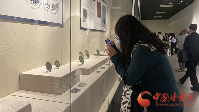 中國甘肅網5月9日訊(本網記者 沈文剛)5月9日,由蘭州市文旅局和平涼市文旅局主辦,蘭州市博物館、平涼市博物館、涇川縣博物館、靈臺縣博物館、崇信縣博物館、華亭市博物館、莊浪縣博物館、靜寧縣博物館等八家市縣博物館聯合舉辦的《光耀金城 鏡鑒千秋——蘭州平涼館藏精品銅鏡聯展》開展。