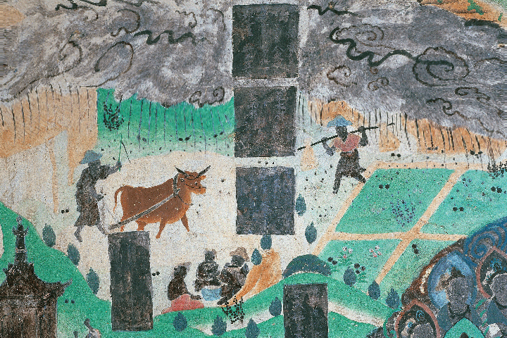 莫高窟第23窟的雨中耕作圖