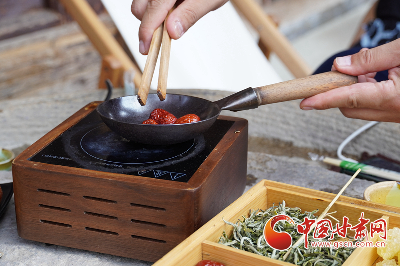 一家罐罐茶店內(nèi),顧客正在烤棗,散發(fā)出一陣棗香。罐罐茶是陜西、甘肅部分地區(qū)特色的喝茶習慣,古城里有不少罐罐茶店。