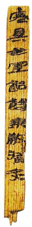 1990年這枚木簡(jiǎn)出土于敦煌懸泉置遺址,現(xiàn)藏甘肅簡(jiǎn)牘博物館。長(zhǎng)7.7厘米、寬0.8厘米、厚0.2厘米。木簡(jiǎn)下部殘缺,字跡清楚,簡(jiǎn)文作“寒具毋置飴餳乘□醬炙”,其中提到的“飴餳”即兩種糖類(lèi)之名,該簡(jiǎn)文為研究?jī)蓾h時(shí)期河西飲食習(xí)俗和制糖史提供了資料。