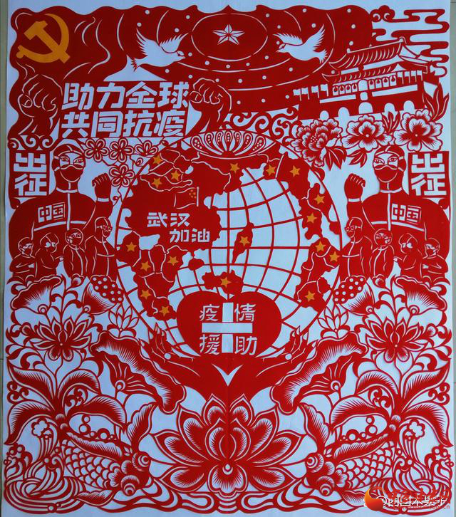 2020年10月中華文化促進(jìn)會(huì)剪紙藝術(shù)委員會(huì)協(xié)同杭州市文化廣電旅游局,杭州市文化館共同舉辦“愛(ài)心同鑄,共創(chuàng)末來(lái)”全國(guó)抗疫情剪紙精品展中,剪紙作品《助力全球,共同抗疫》入選并獲銀獎(jiǎng)。