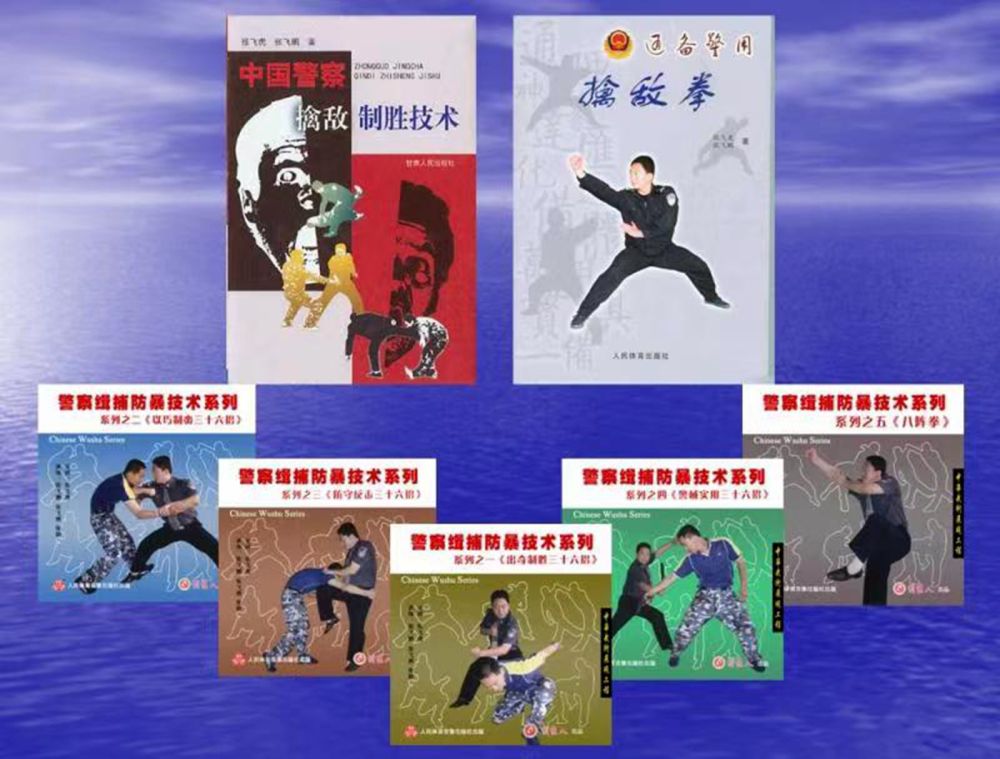 張飛虎在習(xí)武之余,學(xué)術(shù)上也一路精進(jìn),展現(xiàn)了他學(xué)文的天賦,他不但是警院教授,還曾是警院學(xué)報(bào)副主編,除了先后出版的4部學(xué)術(shù)專著外,還錄制了“警察緝捕防暴技術(shù)”系列教學(xué)光碟,在國(guó)內(nèi)外發(fā)行,并有一項(xiàng)科研成果申報(bào)為國(guó)家專利。一位武術(shù)名家,在學(xué)術(shù)上有如此驕人的成就,實(shí)屬不易。治學(xué)之余,張飛虎還分別在《甘肅公安》和《蘭州公安》雜志上創(chuàng)辦并主持《招招制敵》與《實(shí)戰(zhàn)練兵》欄目,解說(shuō)并實(shí)戰(zhàn)演練制敵招法。專著《中國(guó)警察擒敵制勝技術(shù)》一書(shū)2010年被公安部評(píng)為“全國(guó)公安機(jī)關(guān)優(yōu)秀培訓(xùn)教材”,書(shū)中首次提出了“軍隊(duì)擒敵技術(shù)和警察擒敵技術(shù)相殊差別”的觀點(diǎn),并對(duì)擒敵技術(shù)的每一招法進(jìn)行了生理學(xué)、生物力學(xué)的分析,從而科學(xué)地將擒敵術(shù)上升到一個(gè)新的理論與實(shí)戰(zhàn)融通的高度。更為可貴的是,《中國(guó)警察制勝技術(shù)》將法律精神融入其中,使招法的運(yùn)用有了法律依據(jù),盡顯法制社會(huì)的時(shí)代精神,也與文明社會(huì)的要求不謀而合,將警察擒敵技術(shù)與實(shí)用法律無(wú)縫銜接。針對(duì)警察沿襲軍隊(duì)擒敵拳無(wú)主體身份特點(diǎn)之不足,創(chuàng)編了首套以警察擒敵技術(shù)為主體內(nèi)容的擒敵拳——《通備警用擒敵拳》,填補(bǔ)了公安機(jī)關(guān)無(wú)警用擒敵拳的空白。2021年,作為建黨100周年的獻(xiàn)禮,張飛虎與其摯友張勇先生聯(lián)袂出版《維穩(wěn)中國(guó)》,為國(guó)家反恐維穩(wěn)工作貢獻(xiàn)了綿薄之力。