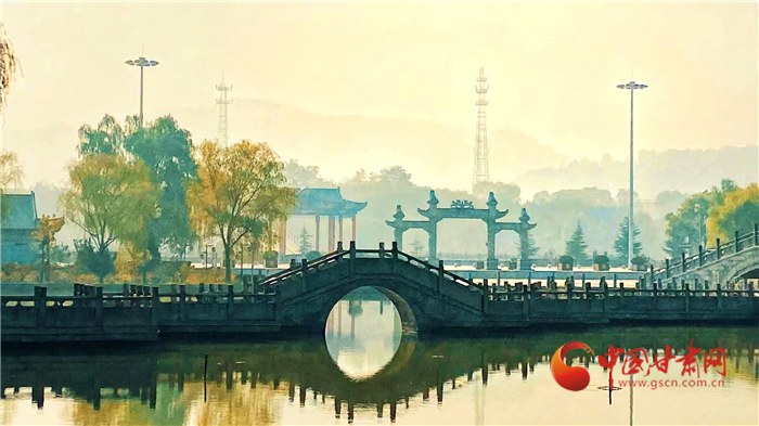 晨曦輝映,秋光旖旎。深秋時節(jié),崇信縣龍泉寺晨霧飄渺,若隱若現(xiàn)的云霧在山間翻涌游動,色彩斑斕的樹木沐浴在輕似薄紗的白霧之中,群山與湖岸秋色交相輝映,宛如水墨丹青,在晨光的映射下,構(gòu)成了一幅如詩如畫的絢麗秋景。