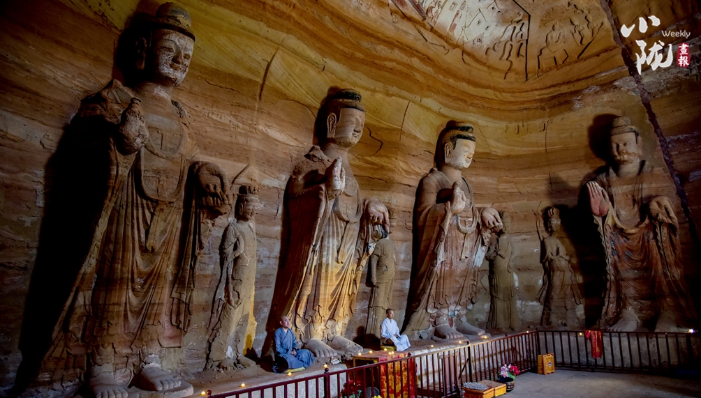 高聳的王母宮被涇河、汭河擁抱,回山上回屋里的磨崖浮雕,傳說(shuō)是《山海經(jīng)》里西王母的最原始的形象。始鑿于北魏太和二年的王母宮石窟現(xiàn)存大小佛像200多尊,雕像、壁畫(huà)精美絕倫。