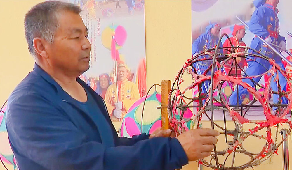 張安邦今年65歲,自其太祖輩起,代代都是技藝嫻熟的滾燈人,到他手里已經(jīng)是第三代了。明清時(shí)的滾燈,燈架、燈盤、轉(zhuǎn)軸都是木制的,花燈是用竹條或柳條編織,解放前改成了羅圈骨架,而現(xiàn)在經(jīng)過他改良的景泰滾燈,則是用高碳鋼絲制作而成。