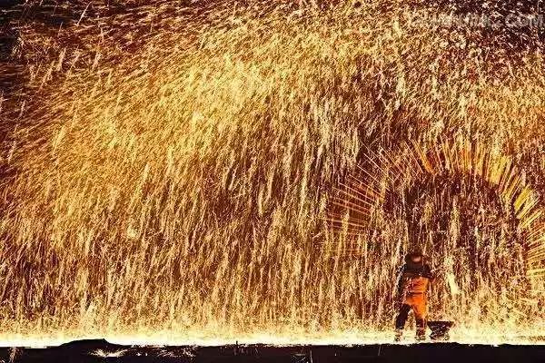 傳統(tǒng)“打鐵花”以老風(fēng)匣、小融鐵爐、耐火罐、陶勺、耐火鍋、木板等為工具;以生鐵、焦炭、木屑為原料,利用木板擊打熾熱的鐵液和木屑混合物,打出一朵朵千姿百態(tài)、爭(zhēng)奇斗艷、精彩紛呈、絢麗奪目的“鐵花”,由于其顏色吉祥,寓意美好,因此,農(nóng)村都喜歡通過“打鐵花”來祈盼來年風(fēng)調(diào)雨順,國泰民安。