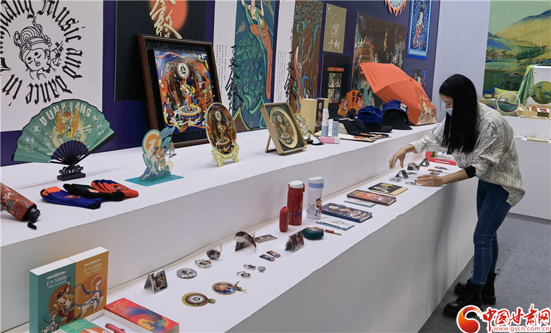 目前,甘肅省主題展館及分館已完成搭建和布展。讀者集團(tuán)文旅公司運(yùn)營經(jīng)理馬倩云介紹,甘肅省主題展館由形象綜合展區(qū)、文藝創(chuàng)作展演、數(shù)字敦煌展區(qū)、文化出版展區(qū)、非遺傳承展區(qū)、隴上好禮展區(qū)六大專題展區(qū)組成,突出敦煌文化、黃河文化、伏羲文化、長城文化、革命文化等甘肅特色文化元素,通過精選的具有標(biāo)志性的文創(chuàng)產(chǎn)品、圖書期刊、精美非遺等約600種4000件展品,全景式展現(xiàn)甘肅獨(dú)特豐富的文化資源、豐碩的文化改革發(fā)展成果和巨大的文化產(chǎn)業(yè)發(fā)展優(yōu)勢(shì)。