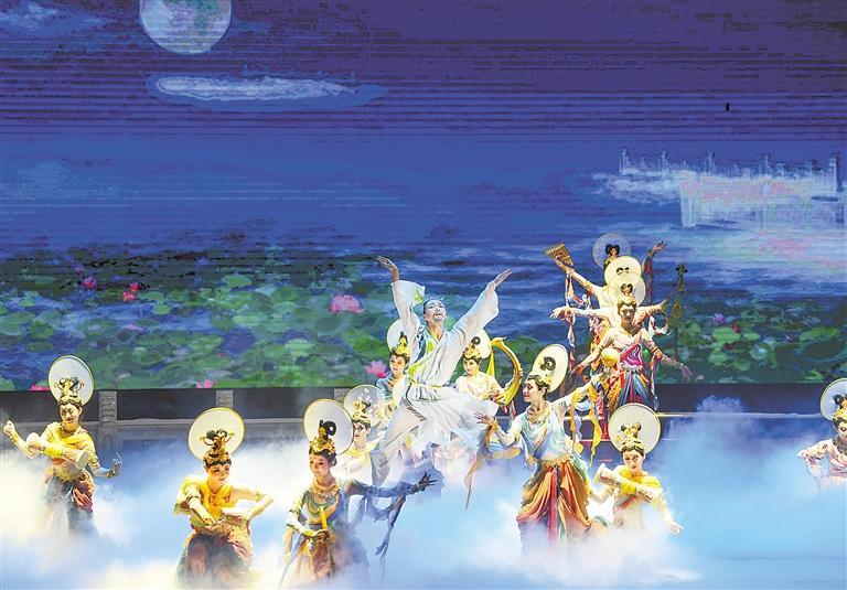 《絲路花雨》由甘肅省歌舞劇院創(chuàng)排,取材于敦煌壁畫藝術(shù),博采各地民間歌舞之長,展現(xiàn)了唐朝對外經(jīng)濟、文化交往頻繁的盛況。