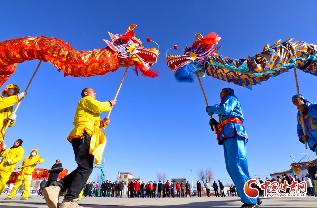 1月9日,甘肅省張掖市甘州區(qū)花寨鄉(xiāng)的社火表演隊正在文化廣場上加緊排練。