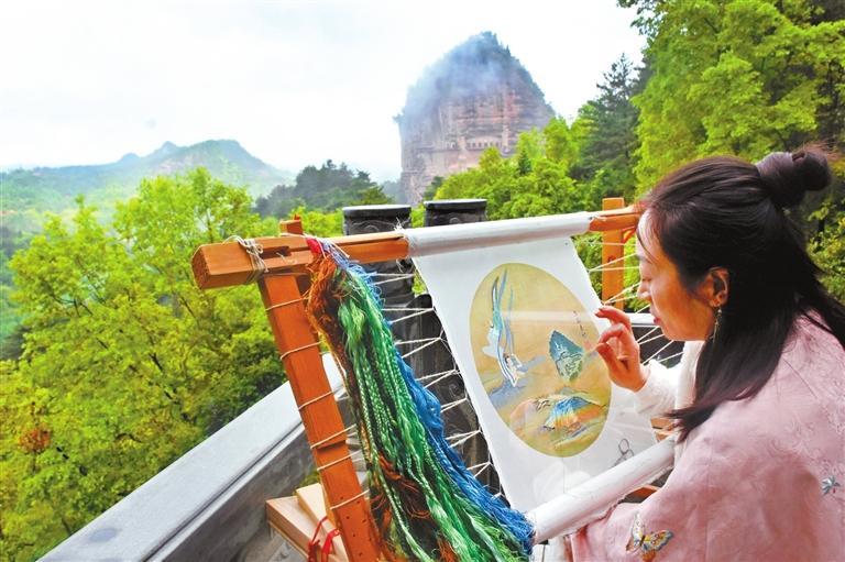 “應用現(xiàn)代審美思維創(chuàng)作出麥積山石窟系列刺繡文創(chuàng)作品,麥積刺繡藝術(shù)品的觀賞價值和實用價值會進一步凸顯。”曹苑春說。除此之外,畫繡、雙面繡團扇、香包、刺繡宮燈、刺繡擺臺等作為裝飾生活的藝術(shù)品,已被很多人所喜愛,刺繡作品正以全新的面貌走入尋常百姓家。