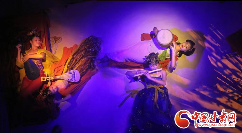 第二表演區(qū)中觀眾將親眼目睹王圓箓送出國寶時的那一幕“心酸”。并在不知覺中被分成十六組進入不同的 “洞窟”,與不同時代古人“對談”。行五十步穿越百年,再行百步穿越千年。