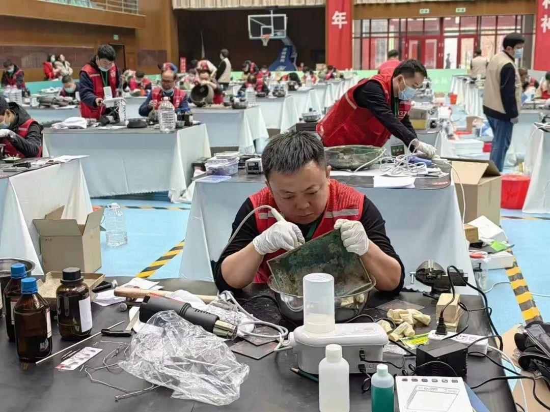 張偉在比賽現(xiàn)場(chǎng)修復(fù)青銅簋