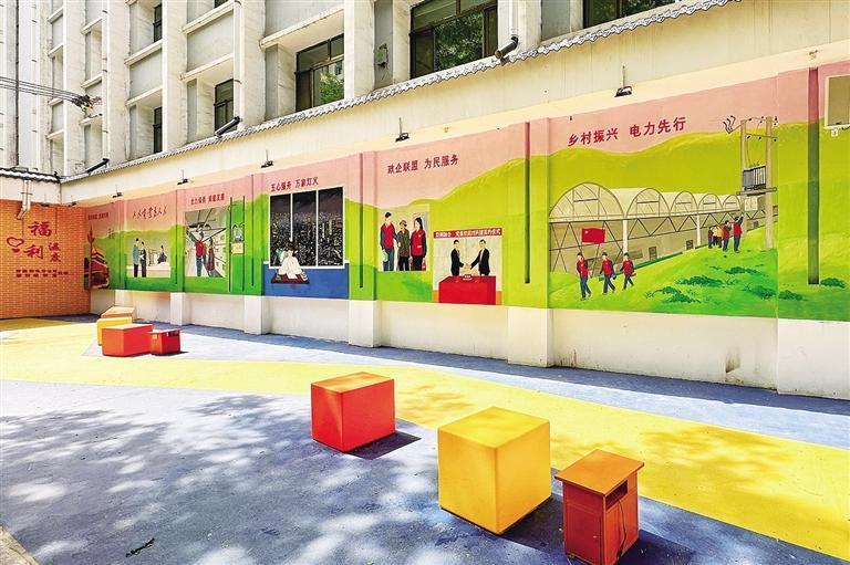 “電亮金城”口袋公園建設從小處著眼,重在“微改造、精提升”。街道社區(qū)多次與西固供電分公司就改造問題召開協(xié)商議事會,結合地形特點,因地制宜,探討口袋公園建設方案,從墻體彩繪、道路硬化,到配套附屬設施設置,每一道工序都精心設計,用心打造。于方寸之間精雕細琢,除精心繪制的墻體彩繪外,還增設了發(fā)光休閑座椅、便民充電樁、高清投影儀等設施,利用路邊空地打造家門口的風景線,擴展居民休閑空間,美化城市環(huán)境,提升城市功能與品質,為辦事群眾和周邊居民提供更加舒適的環(huán)境。