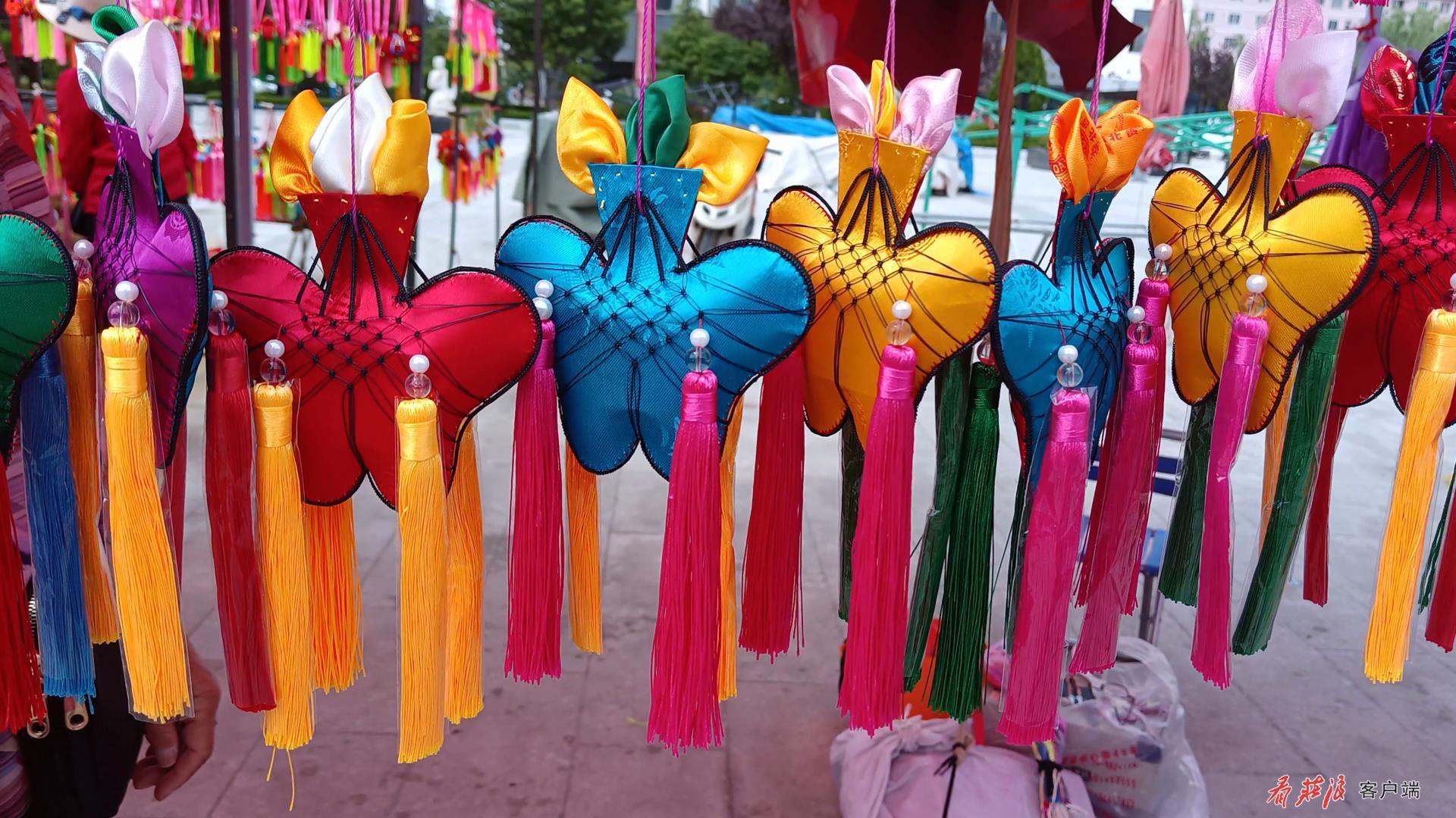 在莊浪過端午節(jié),少不了戴荷包、吃粽子。端午節(jié)來(lái)臨之際,莊浪縣到處都是待售的荷包,香飄四溢,讓人們?cè)缭绺兄蕉宋鐚⒔?/p>