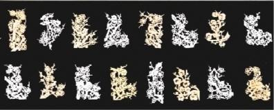 所剪的梅花枝干千姿百態(tài),變化多端,有粗有細(xì)、有長有短。梅花花朵有大有小,有的含苞未放,有的正在盛開。所剪的喜鵲也是形態(tài)多樣,有的在枝頭歡唱,有的在花間飛翔,有的竊竊私語,有的比翼雙棲,給人以喜氣又可愛的視覺效果。共分為8幀圖卷,分別為《寒梅吐艷》《喜梅報(bào)春》《一門喜事》《雙喜盈門》《喜事連連》《梅開五?!贰兜歉咄h(yuǎn)》《喜上眉梢》。