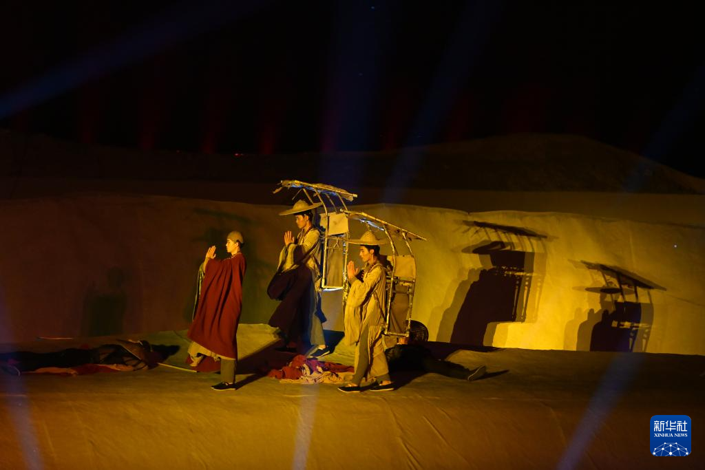 今年以來(lái),脫胎于敦煌文化的洞窟沉浸式體驗(yàn)劇《樂(lè)動(dòng)敦煌》、室內(nèi)情景體驗(yàn)劇《又見(jiàn)敦煌》、沙漠實(shí)景演出《敦煌盛典》和中國(guó)殘疾人藝術(shù)團(tuán)情景音畫(huà)劇《千手千眼》四場(chǎng)劇目在絲路名城甘肅敦煌同步上演,劇目將敦煌歷史底蘊(yùn)、服飾文化、樂(lè)舞文化等生動(dòng)融合,為游客呈現(xiàn)出精彩絕倫的敦煌文化視覺(jué)盛宴,深受中外游客喜愛(ài)。截至8月10日,四大劇目今年已累計(jì)演出1175場(chǎng)次,觀看游客突破66萬(wàn)人次。其中,《敦煌盛典》以敦煌鳴沙山月牙泉為背景,將沙漠景觀與現(xiàn)代舞美結(jié)合,將墻體燈光融入實(shí)景演出,講述了一段發(fā)生在古絲綢之路重鎮(zhèn)敦煌的愛(ài)情故事,展示了敦煌的歷史文化及人文風(fēng)貌。