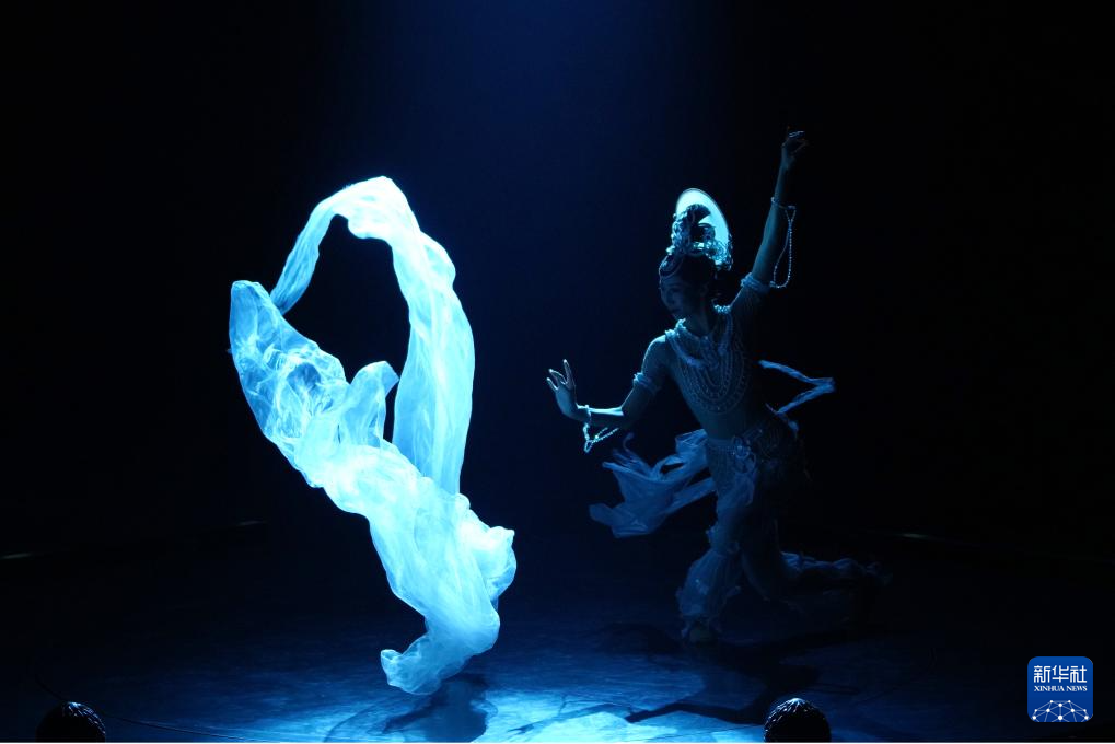 8月9日,演員在《樂(lè)動(dòng)敦煌》中表演。新華社記者 馬寧 攝