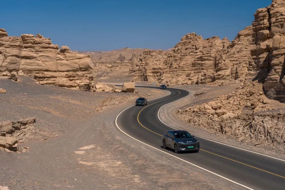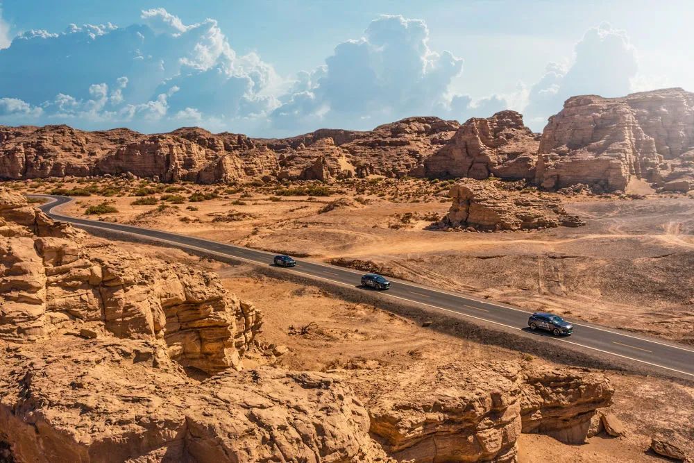 新華社“一帶一路全球行”報(bào)道團(tuán)駕駛長安汽車穿越新疆哈密大海道。新華社發(fā)(卓鵬 攝)