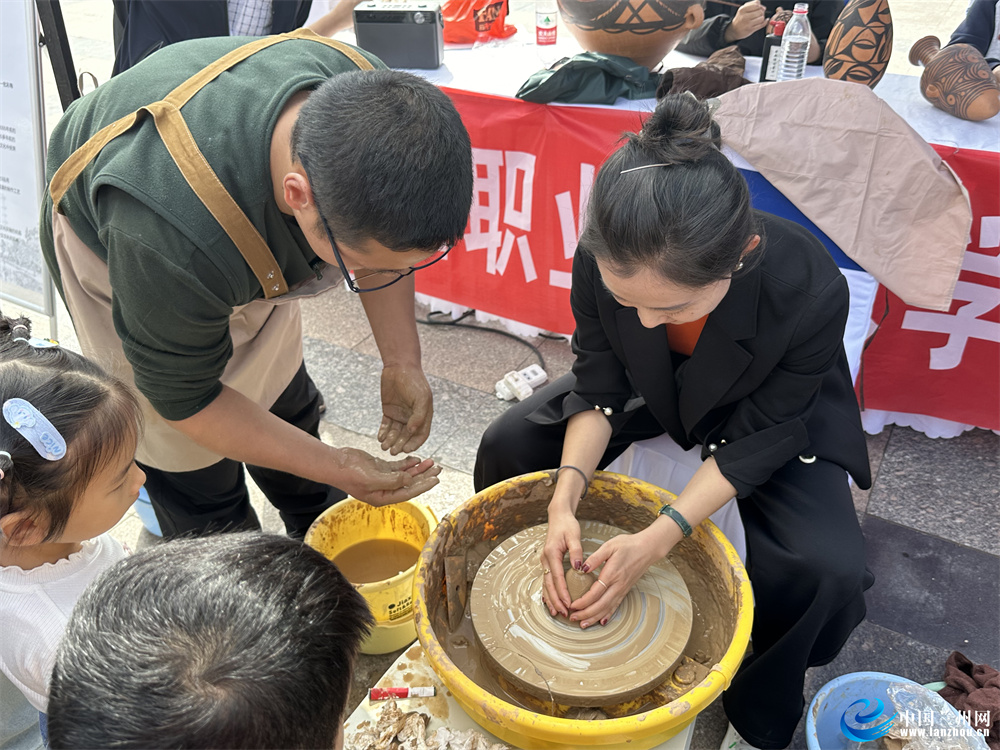 當(dāng)日的活動(dòng)中,蘭州職業(yè)技術(shù)學(xué)院非物質(zhì)文化遺產(chǎn)學(xué)院的師生現(xiàn)場(chǎng)展示蘭州刻葫蘆、慶陽(yáng)剪紙、木版年畫(huà)、甘南藏族唐卡、泥板畫(huà)、甘肅彩陶、掐絲琺瑯畫(huà)等非遺技藝,吸引了很多市民見(jiàn)此情景駐足觀看。其中甘肅彩陶展示尤為引人注目,不少市民上手體驗(yàn),在學(xué)院同學(xué)的幫助下體驗(yàn)非遺文化。市民張女士說(shuō):“這是我第一次體驗(yàn)制作甘肅彩陶,讓人印象非常深刻,了解了古人是如何制作彩陶的,也讓我'沉浸式'感受到非遺文化的魅力。”