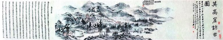 民國初年,張維返回蘭州之后,仍然念念不忘敦煌經卷,曾三赴河西考察敦煌莫高窟。1940年,張維第三次考察敦煌莫高窟返回途經武威時,前往拜訪好友、甘肅近代著名書畫家范振緒,為其講述敦煌莫高窟的坎坷境遇與現狀。在交流中,張維請范振緒繪制《敦煌訪古圖》畫卷。1941年,范振緒繪制完成之后,張維將此圖帶回蘭州,并邀請張大千、于右任、高一涵、馮國瑞、曹經沅等著名詩人題詠。