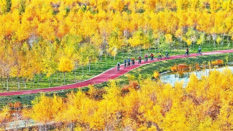 張掖奧林匹克森林公園成為市民健身休閑的好去處。新甘肅·甘肅日報通訊員 王將