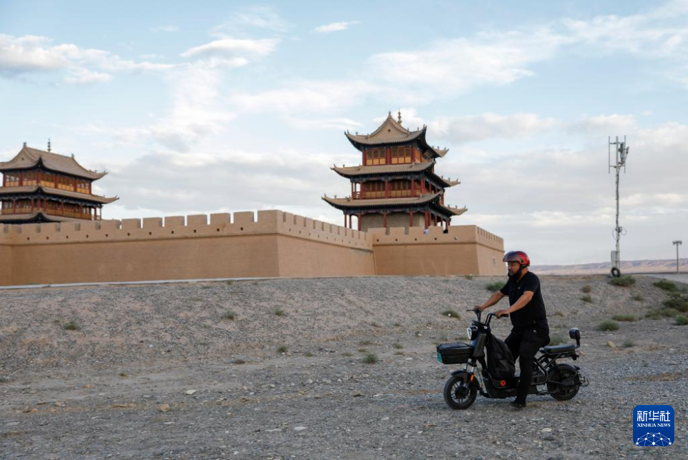 7月13日,李森結束一天的工作離開甘肅嘉峪關關城景區(qū)騎電動車回家。新華社記者 方欣 攝