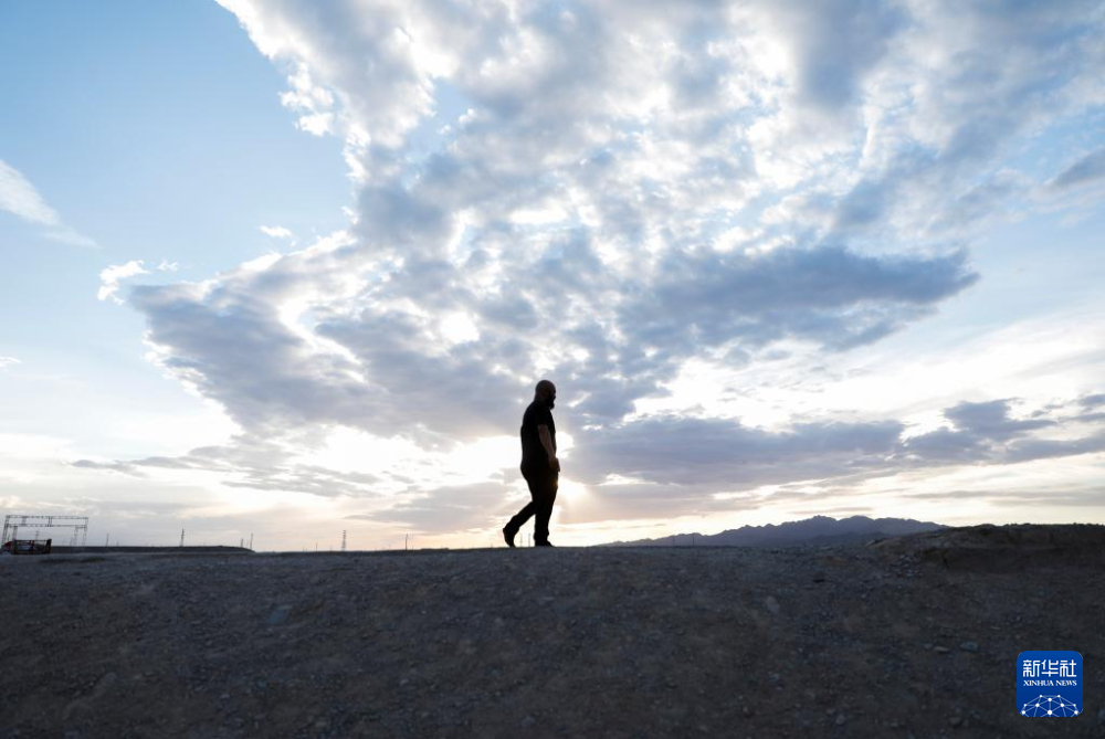 7月13日,李森結束一天的工作離開甘肅嘉峪關關城景區(qū)。新華社記者 方欣 攝