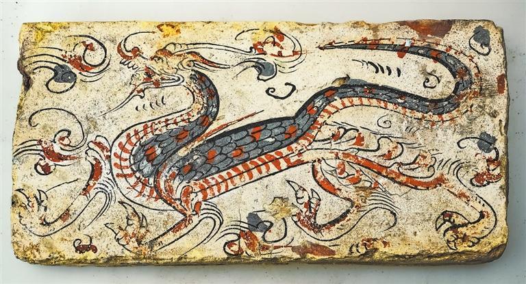 中國人恪守天人合一、陰陽平衡、五行生克的風水理論,風水中龍脈對人心理的影響深遠,使得龍在建筑裝飾、墓葬中普遍應用,成為中國建筑裝飾藝術的瑰寶。隨著兩漢磚室墓的出現(xiàn)和流行,由星辰崇拜衍生而來的四靈形象,逐漸成為墓葬建筑裝飾的重要元素,如金昌市博物館藏的魏晉青龍磚,龍首高昂,龍須上揚,曲頸挺胸,張口吟嘯,前肢登騰,后肢做行進狀,周圍環(huán)繞云氣紋,有隨云彩而飛動之感。