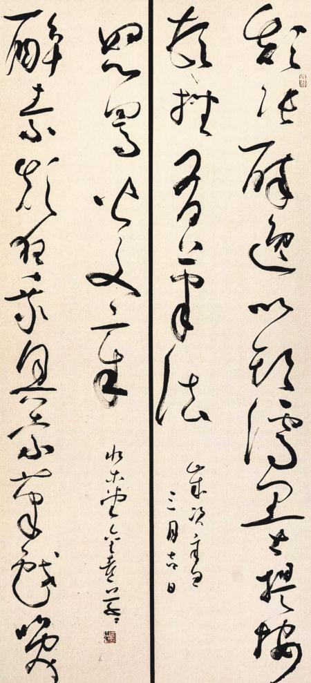 走出去,站在全國的高度,集中進(jìn)行學(xué)習(xí)和交流,對一個立志進(jìn)取的書法家,可以說是一個脫胎換骨的修煉,中國書法發(fā)展的當(dāng)代狀態(tài),成為進(jìn)取的最大參照,風(fēng)格極力貼近時代風(fēng)尚,在此基礎(chǔ)之上加入個人的鮮活語素,在作品中即表現(xiàn)出了時尚,又有自己的構(gòu)想,才有自己的一席之地。侯金喜抓住時代脈搏,積極捕捉在展覽中尚處于不顯眼的元素,不斷加以顯化,使個人的作品在龐大的展出體系中獨(dú)具風(fēng)采,難度可想而知,在高手如林的態(tài)勢下,侯金喜知難而上、刻苦磨煉,向經(jīng)典取法,向當(dāng)代名家問路,雙向融合、求新求變,經(jīng)過了這樣一個長的時段的求索,他的草書在全國眾多的草書家中拔地而起,引發(fā)了廣泛的關(guān)注??此牟輹兓亩劝盐赵诹艘粋€比較妥帖的度上,他不以奇異詭變?yōu)槌缟校P畫塑造大體以傳統(tǒng)語言為宗,使柔和與剛健統(tǒng)馭在一起,這種立意基本圍繞中國書法流變的中軸線,可以受到時間的考驗(yàn),在一些筆畫中注入的時代信息,經(jīng)過個人的藝術(shù)提煉,具有了新的生氣。在結(jié)構(gòu)選擇上,他同樣進(jìn)行了深思熟慮,反復(fù)篩汰了過度追求時髦的招數(shù),一直強(qiáng)調(diào)深層次的內(nèi)涵,把一個結(jié)體放在歷史的縱向上反復(fù)琢磨,他自己認(rèn)為,形象造型只有沿著時序的推進(jìn),才能有機(jī)地融入歷史,成為藝術(shù)的終極選擇,所以侯金喜的探索是審慎的,邁進(jìn)是疊復(fù)的,我們欣賞他的作品,可以看出他思考的勤謹(jǐn),每一個階段都有不同的表達(dá),欣賞者隨著他的筆觸的流瀉,可以領(lǐng)略到豐富的視覺享受。