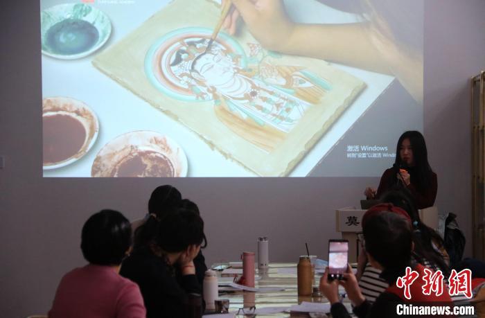 2023年2月,在敦煌研究院莫高學堂,研學導(dǎo)師給學員講授敦煌壁畫臨摹技法。張曉亮 攝