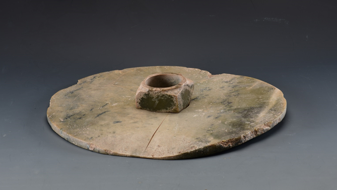 全世界可能只有中國先民具體提出“天圓地方”的宇宙觀。或至少可說:全世界只有距今四、五千年前,中國黃土高原上的先民,具體地用美石或美玉磨制帶中孔的圓形器、方形器,也就是:圓璧與方琮,來祭祀天神、地祇。先民甚至將圓璧、方琮上下垂直疊壓,將圓璧中孔套在方琮的短射口外,以增加疊壓的穩(wěn)定性。