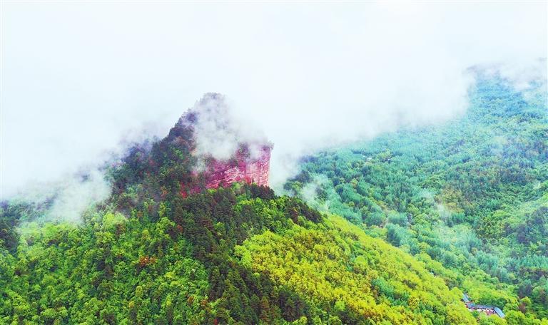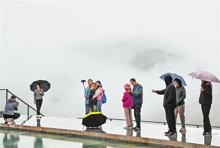 在綿綿細(xì)雨中,麥積奇峰時(shí)隱時(shí)現(xiàn),吸引游客慕名而來感受“麥積煙雨”的魅力。新甘肅·甘肅日?qǐng)?bào)記者 田 蹊