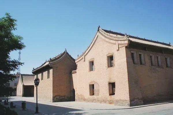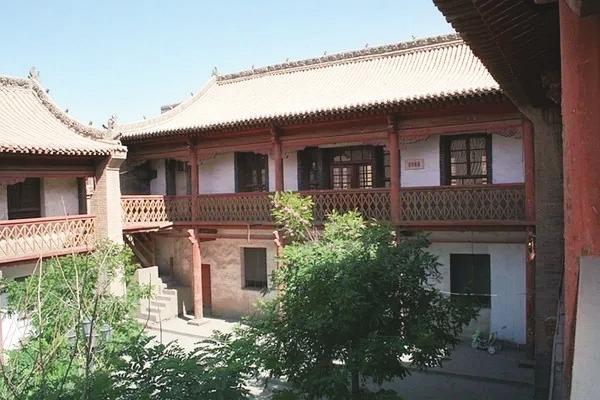 這是一座由府門、大堂、二堂、三堂、書齋、廂房和后宅一套龐大的雙層樓閣式四合院(包括主樓、配樓、藏書樓等),以及亭臺(tái)、泉池、園林組成。四合院樓閣歇山屋頂,青磚砌墻,雙獅守門,中間是正堂,兩邊是七十二座虎頭街門,飛檐雕柱,氣勢磅礴,煞是威嚴(yán)。府門內(nèi)有磚雕磨塑的麒麟照壁。整個(gè)府邸設(shè)計(jì)獨(dú)特,氣勢非凡,占據(jù)了甘州城里的一條大街。