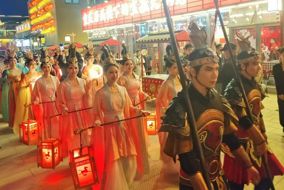 在漢唐天馬城西涼大劇院,大型沉浸式情景舞臺劇《天馬行》,用美輪美奐的舞美場面再現(xiàn)漢文化歷史,講述涼州的千年風(fēng)華,帶領(lǐng)觀眾進行一次古今穿越之旅。