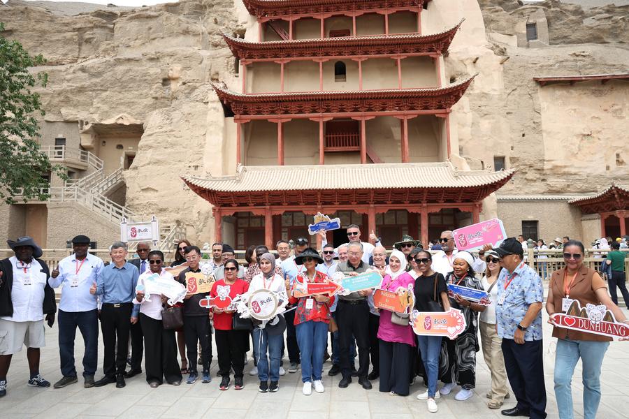 6月6日至8日,來自22個(gè)國(guó)家的駐華使節(jié)和高級(jí)別外交官走進(jìn)敦煌,尋訪莫高窟,游覽鳴沙山月牙泉景區(qū),參加河西走廊五市的文旅專場(chǎng)推介會(huì),并在對(duì)話會(huì)上共同探討“絲路精神推動(dòng)文明交流互鑒”。
