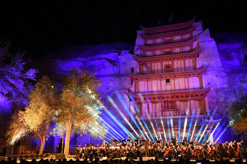 2016年9月15日,首屆絲綢之路(敦煌)國際文化博覽會系列活動(dòng)之一的敦煌莫高窟1650周年紀(jì)念音樂會在莫高窟舉行。著名指揮家陳燮陽、特邀音樂家趙聰?shù)人囆g(shù)家奉上了具有絲綢之路沿線諸國特色的經(jīng)典曲目,2000余名觀眾在莫高窟九層樓廣場前追憶絲綢之路的璀璨歷史,聆聽穿越古今的藝術(shù)交響。